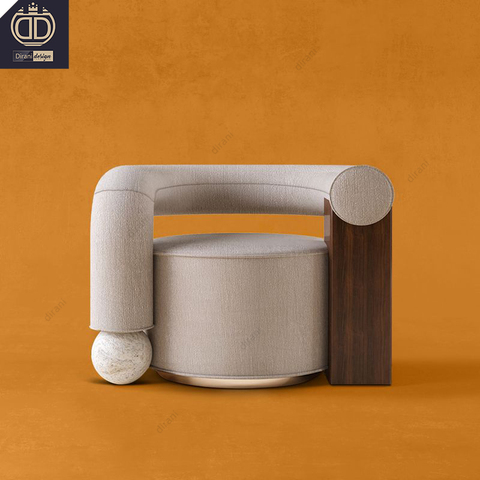 Modern Unique Special Design Art Chair Com Mármore Aço Inoxidável Madeira e Tecido Estofados