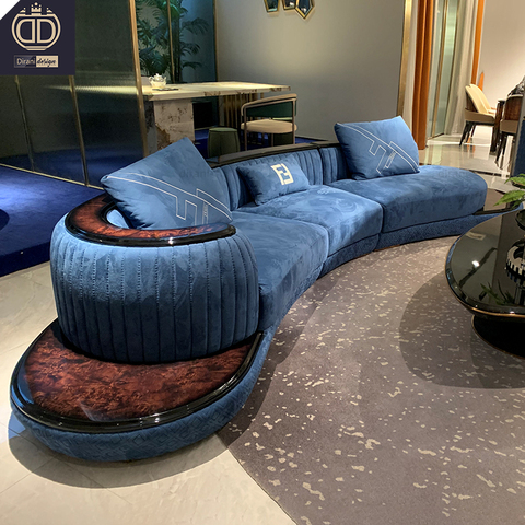 ספת עור יוקרתית לאולם משפחתי ספה מעוקלת סלון סלון כחול מעוקל ספה חתך עם שולחן קפה